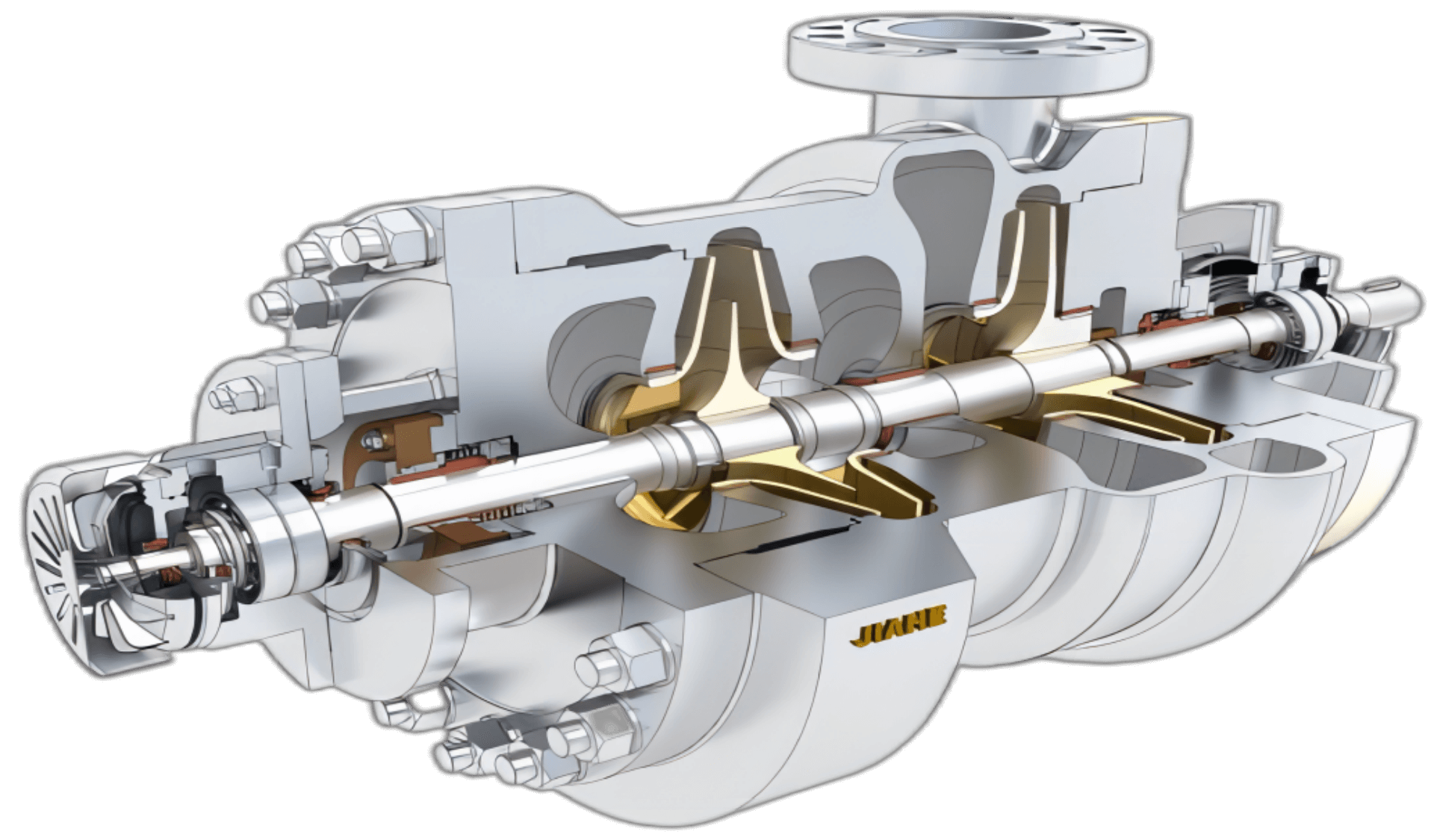 JHBB/JHBD泵(BB2)為兩級、徑向剖分兩端支承離心泵。符合API610-11th標(biāo)準(zhǔn)。JHBB為首級單吸,JHBD為首級雙吸。進(jìn)出口法蘭尺寸滿足ANSI或ISO標(biāo)準(zhǔn)。密封腔的設(shè)計(jì)符合ISO21...
